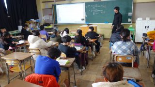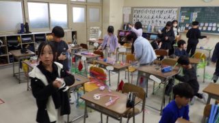 6年生の算数は、今まで学んだことの復習をプリントで行いました。図形の面積を求める問題や拡大図、縮小図などの問題に取り組みました。皆さん集中して、自分のペースで問題を解き続けていました。