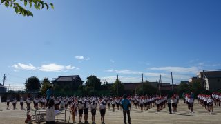 学校行事 全校練習2 この日は2回目の運動会全校練習がありました。運動場で、入退場の練習や開会式の練習をしました。体育委員さんの号令に合わせて準備運動もしました。この日はとても天気が良く、空は青々としていました。本番も爽やかな天気だと良いですね。 2025.09.30 学校行事