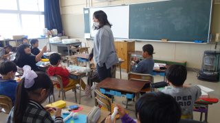 2年生の図画工作は、粘土で立体物をつくりました。粘土をにぎったり、丸めたりしたときの形をじっくり見て、何に見えるのかを想像してつくりました。にぎった指の形が残っていたら、それをいかして食べ物や生き物をつくりました。