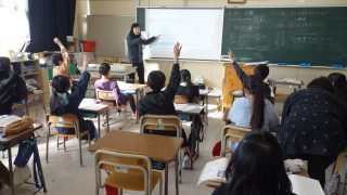 3年生の算数は、小数について学んでいます。この日は、水のあまりのかさが何リットルになるのかを考えました。10分の1のかさである0.1リットルという量を覚えたことで、分数の別の表し方としての小数を学びました。