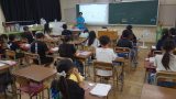 図工では、消してかくの授業に入りました。今日は、黒コンテを使って、画用紙を真っ黒に塗りつぶしました。子ども達の手は真っ黒。中には、腕や顔まで黒くなっている児童もいました。汚れながらも、笑顔いっぱいで楽しい活動になりました。次回は、消しゴムで消して、作品を仕上げていきます。