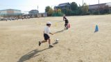 1年生かえる跳び、うさぎ跳びなどいろいろな技の練習をしました。