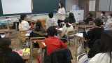 5年生の外国語は、誕生日を聞いたり答えたりする学習でした。まず、日にちの言い方を全員で覚えました。その後で、誕生日がいつなのかを問う英文と日にちを答える英文を確認しました。それからペアになって、お互いの誕生日を聞き合いました。広く応用できそうな英文を覚えましたね。
