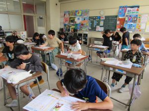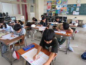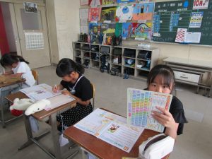 3年生の国語では、ローマ字の学習をしています。「あいうえお」[aiueo」・「きって」「kitte」など新しく習うことが多くありますが、集中して取り組むことができました!ローマ字を理解して、タブレットのキーボード入力もきちんとできるようになりたいですね♪