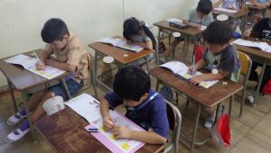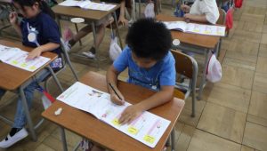 「今日の漢字は何かな?」「もう書けるようになったよ!」と、子どもたちは新しい漢字に出会うのがうれしい様子。
