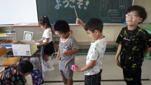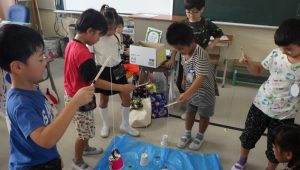 1年生は「これおもしろい!」「もう一回やりたい!」と目を輝かせながら、夢中になって遊んでいました。もらった景品も嬉しそうに持ち帰りました😊