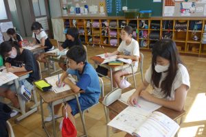 5年生の保健体育は、けがの手当てについて学びました。最近、自分が体験したけがの様子や対応についての話を出し合いました。そして、その対処について考えました。それから、けがの大きさごとに、手当のしかたを考えました。生活の中で役立つ知識を得ることができましたね。
