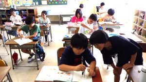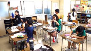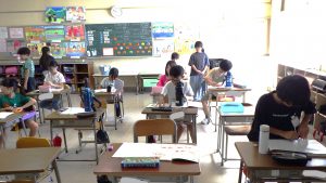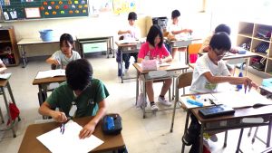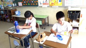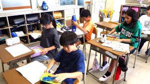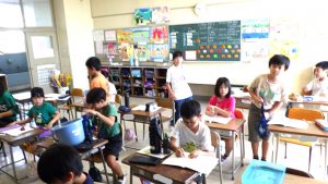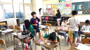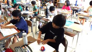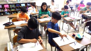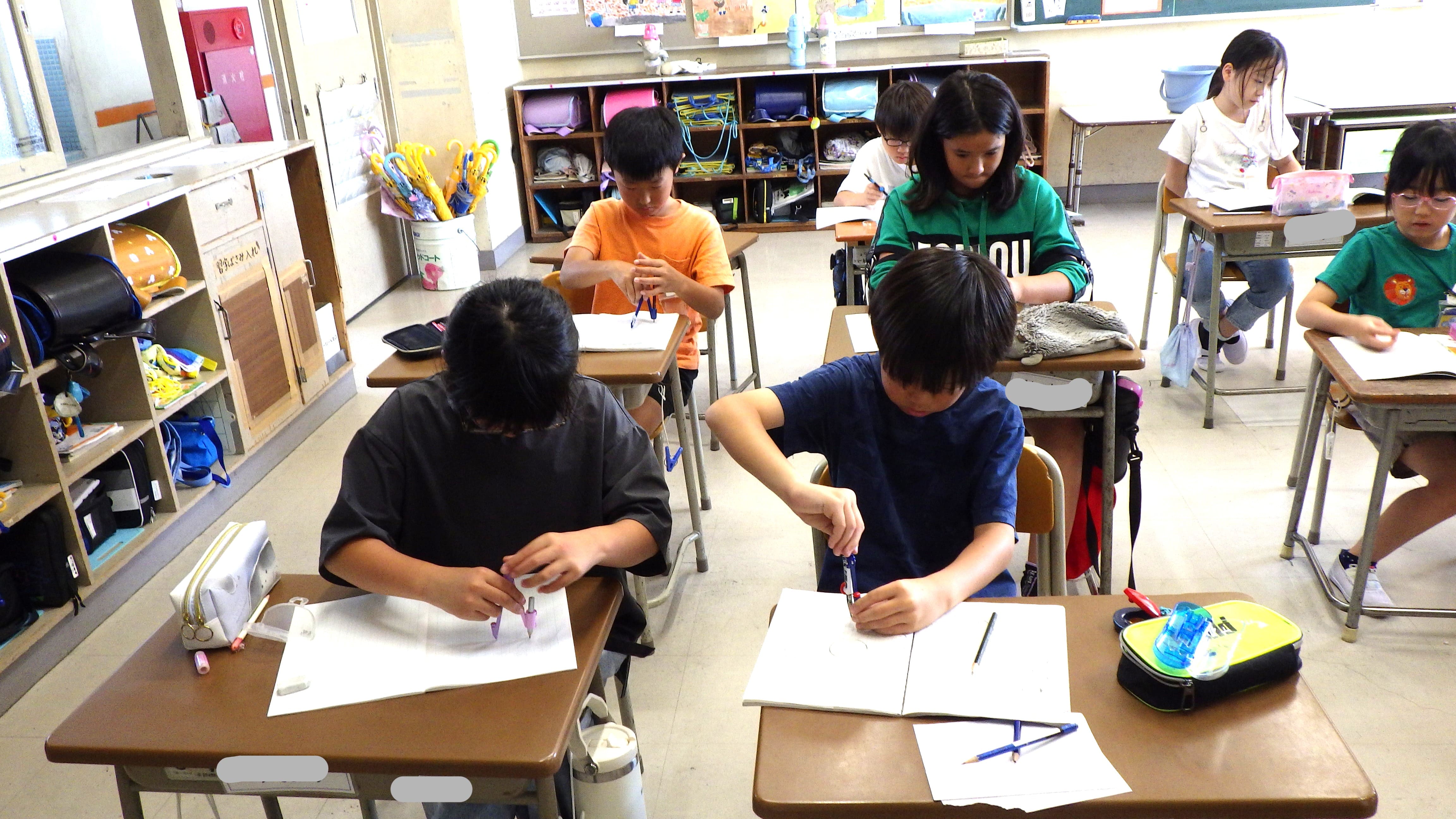 道具箱や教室内からいろいろな円をかけそうな物をさがして、円をかいていました。