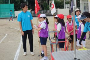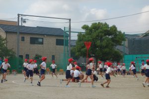 この日の1,2時間目は運動会の総練習でした。総練習と言っても実際に全ての競技をするのではなく、プログラム順に競技の入退場や器具の準備、指揮に合わせた放送などの練習を行いました。委員会の5,6年生が準備等で運動場を駆け回っていましたね。一生懸命自分の担当内容に取り組む姿は見ていて気持ちが良いですね。