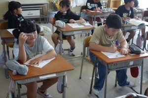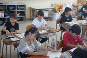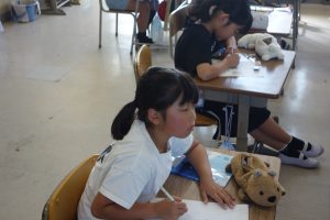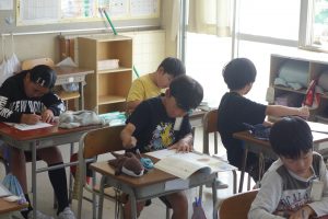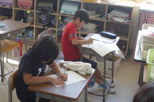 3年生の国語では、秋らしさを感じたことについて文章にまとめる学習をしています。まず、自分たちの生活の中で,秋らしさを感じることを発表しました。秋らしい食べ物や秋の行事に関することが話題になりました。それらを参考にして、プリントに文章を書きました。イラストも入れて仕上げていましたね。