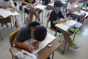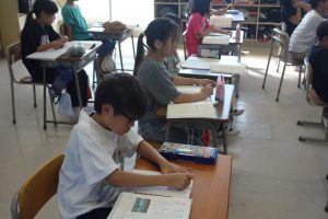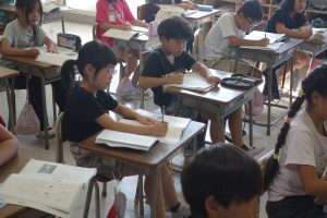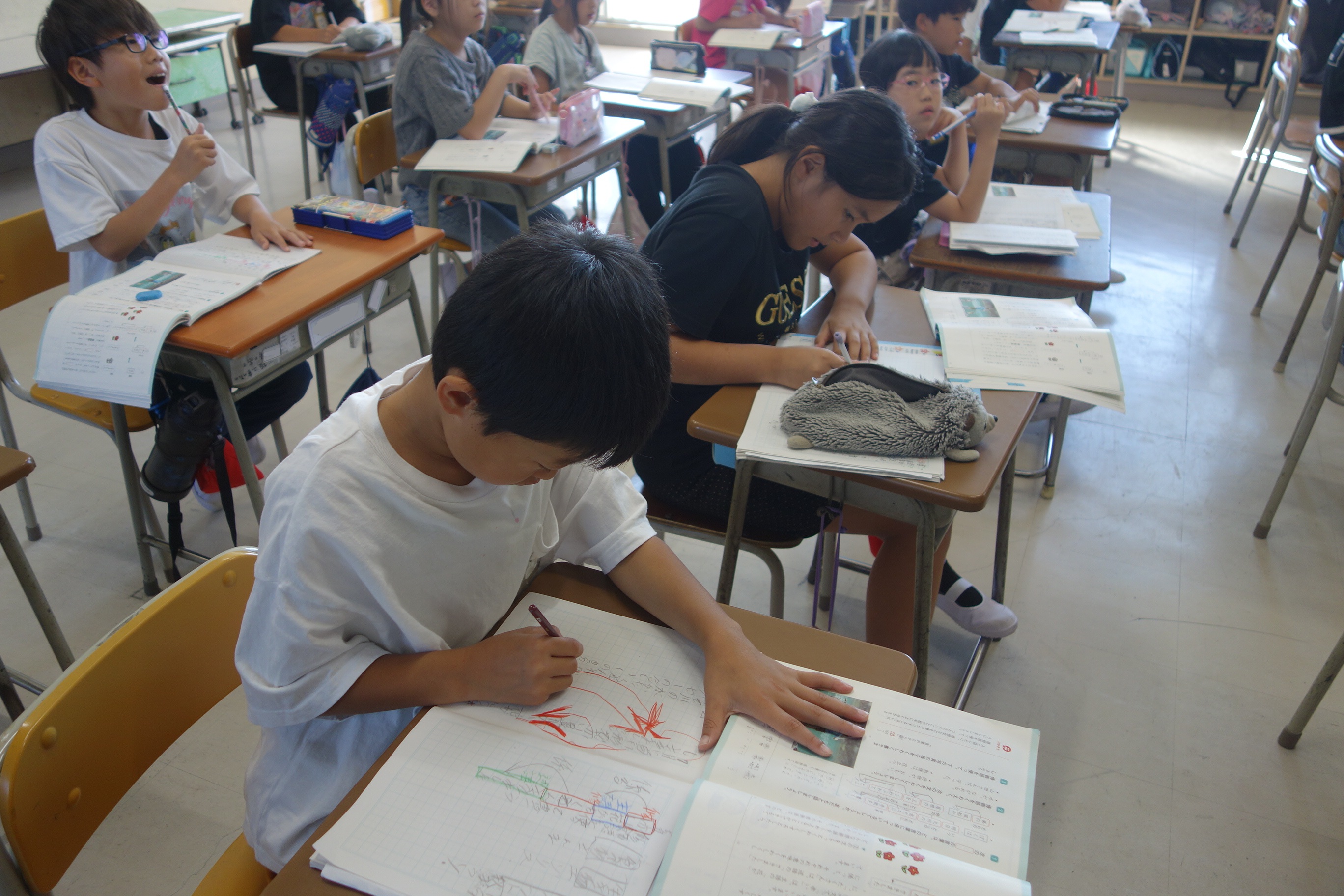 3年生の国語は、修飾語の学習をしています。まず、主語や述語について確認してから、修飾語を使うことで、文の内容が詳しくなることを学びました。そして、実際に修飾語を使って文章を書いてみました。書くことで、修飾語の使い方とその効果を実感できたことでしょう。