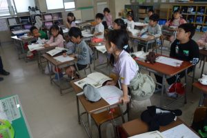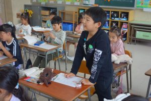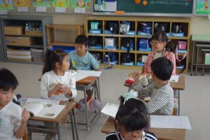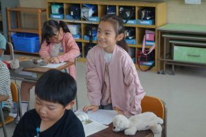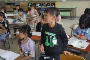 お手紙 2年生 2025.10.21 2年生の国語は、物語文『お手紙』の学習をしています。がまくんとかえるくんが登場する心温まる物語です。この日は、自分だったらどうするのかを考えながら読み取りをしました。みなさんの意見も、相手を思いやる優しさが感じられるものが多かったですね。