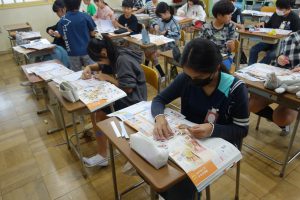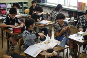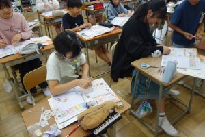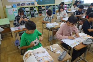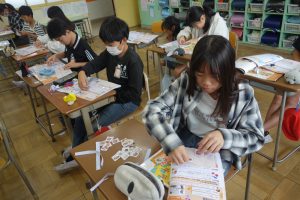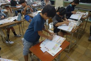 6年生の家庭科は、栄養バランスのとれた食事をどう作ったらよいかを学んでいます。この日は、1食分の献立の栄養のバランスについて考えました。食事メニューカードを組み合わせて、実際に1食分の献立を作ってみました。やはり、ご飯とおかず数品という組み合わせが多かったようです。