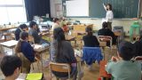 5年生の図画工作は、自画像を描きはじめました。鏡を見るかわりに自分の顔を写真に撮って、それを見本にして下書きを描きます。大きな紙に描いているので、これがなかなか難しいようです。お互い仕上がり具合を確認し合いながら、筆を進めていました。