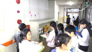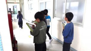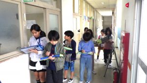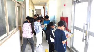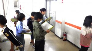 校内を歩き回って、学校の中にある消防設備を探しました。