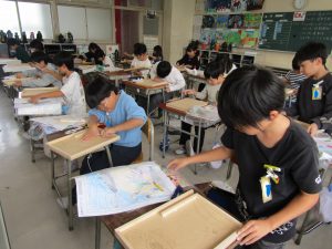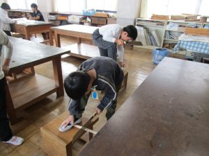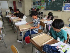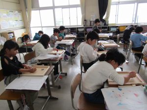 3年生の図画工作では、「玉転がしゲーム」の製作をしています。初めてのこぎりを使いましたが、最後まであきらめずに木を切ることができました!(安全にも注意できましたね)切った木をボンドでつけた後、絵の下描きをしました。完成が楽しみですね♪
