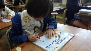 新しいドリルになって、丁寧に名前を書き、新鮮な気持ちで問題を解いていました。