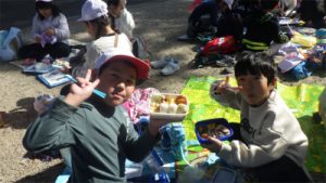 お弁当も朝からずっと楽しみにしていて、お弁当タイムはニコニコ笑顔がいっぱいでした。