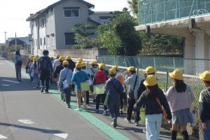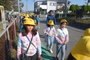 スーパーの見学 3年生 2025.10.30 3年生が、近隣のスーパーの見学に出かけました。店の様子や利益を上げるために工夫していることなどを調べています。出発前に、安全に店に向かうための注意点などを聞いてから出発しました。お店の工夫をたくさん見付けてきてくださいね。