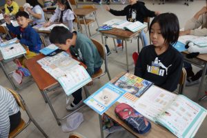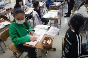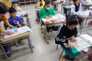 かけ算 2年生 2025.10.31 2年生の算数はかけ算を学んでいます。この日は、九九づくりの表を使ってかけ算を視覚的につくってみました。かけられる数を表の縦、かける数を表の横と決め、長方形をつくってかけ算を表しました。この表を使うと、6の段も見やすくてよいですね。