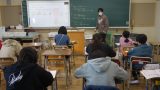6年生は体育でTボールに取り組んでいます。この日は、ルールを少し変えて試合をしました。守備がゴロをキャッチしたとき、チームの別の子に渡さないとアウトにできません。そのルール変更で、アウトをとるとき2人以上がプレイに関わるようになり、よりアクティブな試合内容になりましたね。