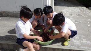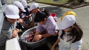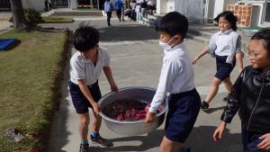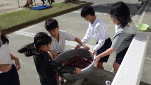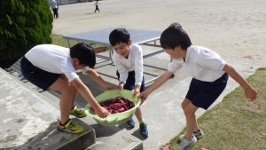 3年生 焼き芋準備 3年生 2025.11.10 明日の焼き芋に向けて… 3年生と2年生は、芋を洗いました。 皮をめくりすぎないように、気を付けて洗いました。 明日も、天気がよさそうです。焼き芋楽しみですね!
