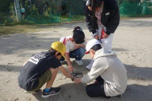 3年生3年生の理科は、光の学習をしています。この日は、虫めがねを使って日光を集める実験をしました。まず、虫めがねで日光を集めて,色のこい紙に当ててみます。そして、虫めがねを紙に近づけたり,遠ざけたりして,日光を集めたところの明るさやあたたかさを調べます。この日は、少し雲が出ていたので、太陽の光が弱くなったり強くなったりしていました。その度に、一喜一憂の実験となりました。