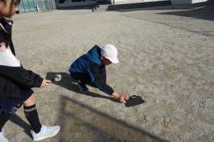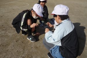 3年生の理科は、光の学習をしています。この日は、虫めがねを使って日光を集める実験をしました。まず、虫めがねで日光を集めて,色のこい紙に当ててみます。そして、虫めがねを紙に近づけたり,遠ざけたりして,日光を集めたところの明るさやあたたかさを調べます。この日は、少し雲が出ていたので、太陽の光が弱くなったり強くなったりしていました。その度に、一喜一憂の実験となりました。