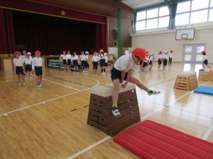 3年生 体育 3年生 2025.11.12 3年生の体育では、跳び箱の授業が始まりました!さまざまなの跳び箱の高さ、縦・横向きを開脚跳びで跳ぶことができましたね♪今後は「台上前転」にも挑戦する予定です。