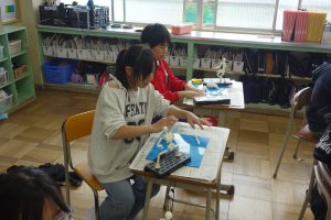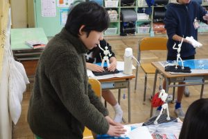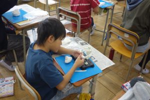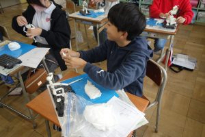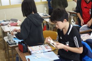 6年生の図画工作は、立体作品に取り組んでいます。将来の自分をテーマにして、紙粘土で人間をつくります。テーマに合わせてどんなポーズをとらせるのかが、アイデアを必要とするところです。作品を自分のイメージに近づけられるよう頑張ってくださいね。