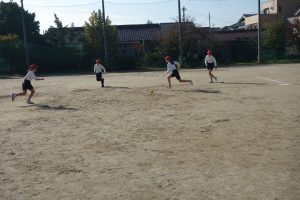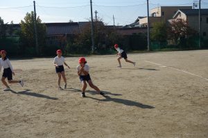 6年生の体育はTボールに取り組んでいます。この日は風もなく温かかったので、運動するのには絶好のコンディションでした。皆さんはゲームに慣れてきたようで、バッティングの技術や守備の技術が向上してきています。打たれたボールを早いタイミングで守備が止めて、点数を抑える場面がありました。