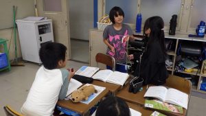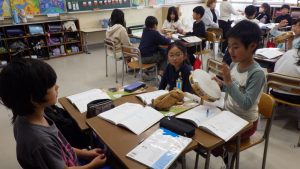 音を出して、トライアングルはどのようになってなっているか調べました。