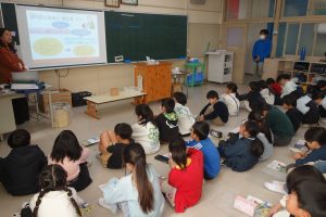 3年生3年生が、認知症サポーター養成講座を受けました。2年に1回受けることのできる講座です。認知症と思われるご老人と出会ったときなどのために、認知症の高齢者の特徴や対応などを教えていただきました。説明の途中にクイズなども含み、分かりやすくお話ししてくださいましたね。