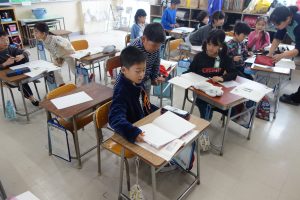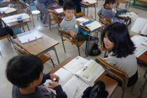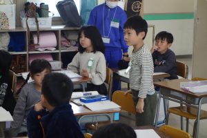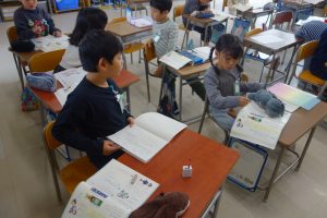 2年生の国語は、意味が似ている言葉や、意味が反対の言葉について学んでいます。この日は、似た意味の言葉について学んだ後で、例文の言葉に似た意味の言葉には何があるのかを考え、それが例文にあてはまるのかを話し合いました。しっかりと話し合うことができましたね。