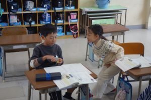 2年生2年生の国語は、意味が似ている言葉や、意味が反対の言葉について学んでいます。この日は、似た意味の言葉について学んだ後で、例文の言葉に似た意味の言葉には何があるのかを考え、それが例文にあてはまるのかを話し合いました。しっかりと話し合うことができましたね。