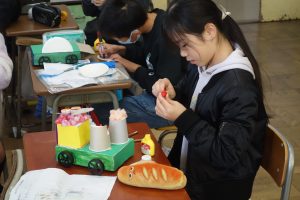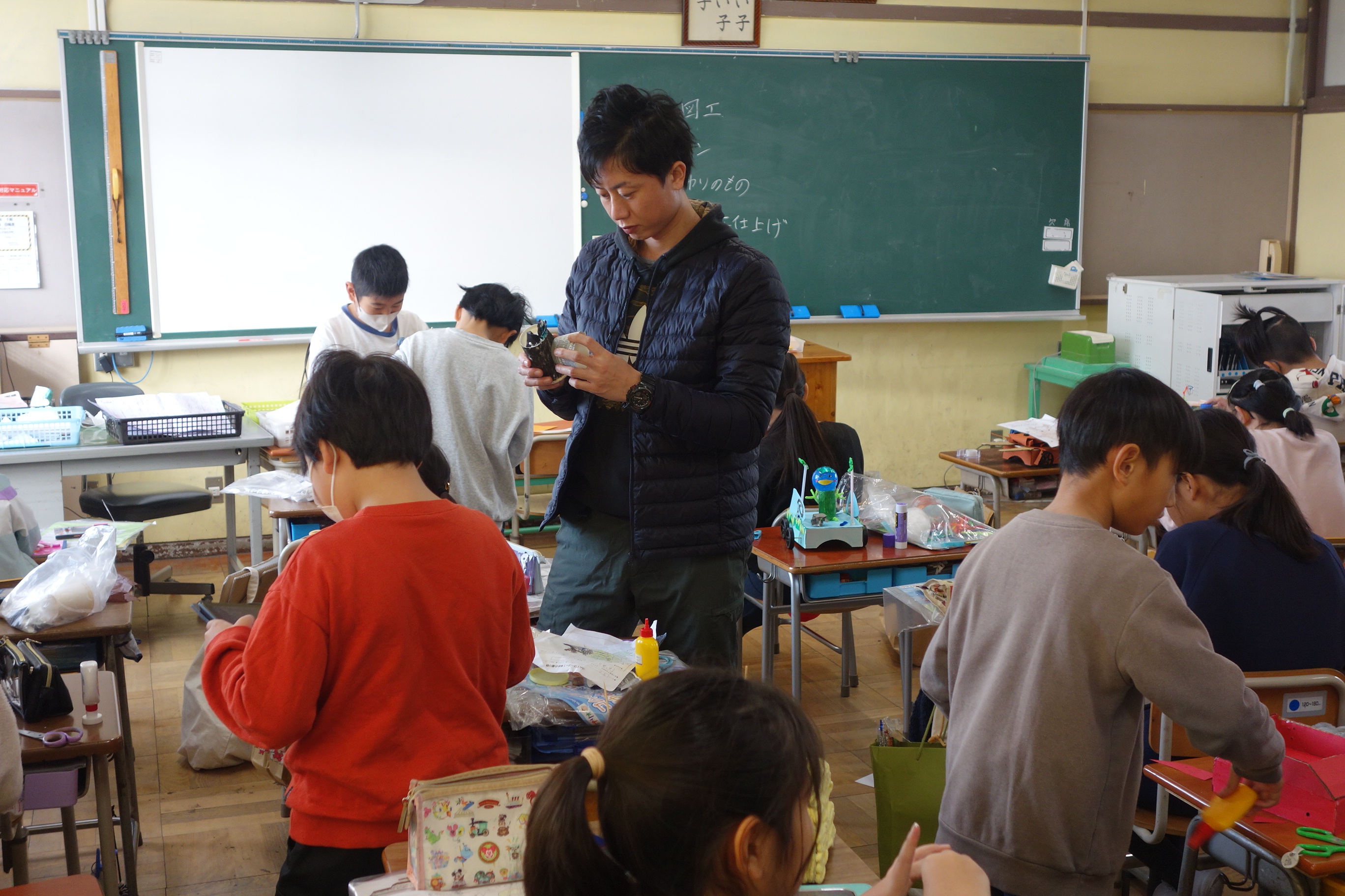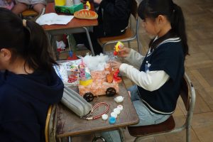 夢の乗り物 4年生 2025.11.18 4年生の図画工作は、『夢の乗り物』という立体物を制作しています。「こんな乗り物があったらいいな」というイメージをもとにして作品にしています。どんな乗り物になるのかが、少しずつ形になって見えてきましたね。