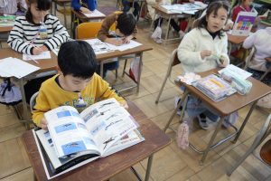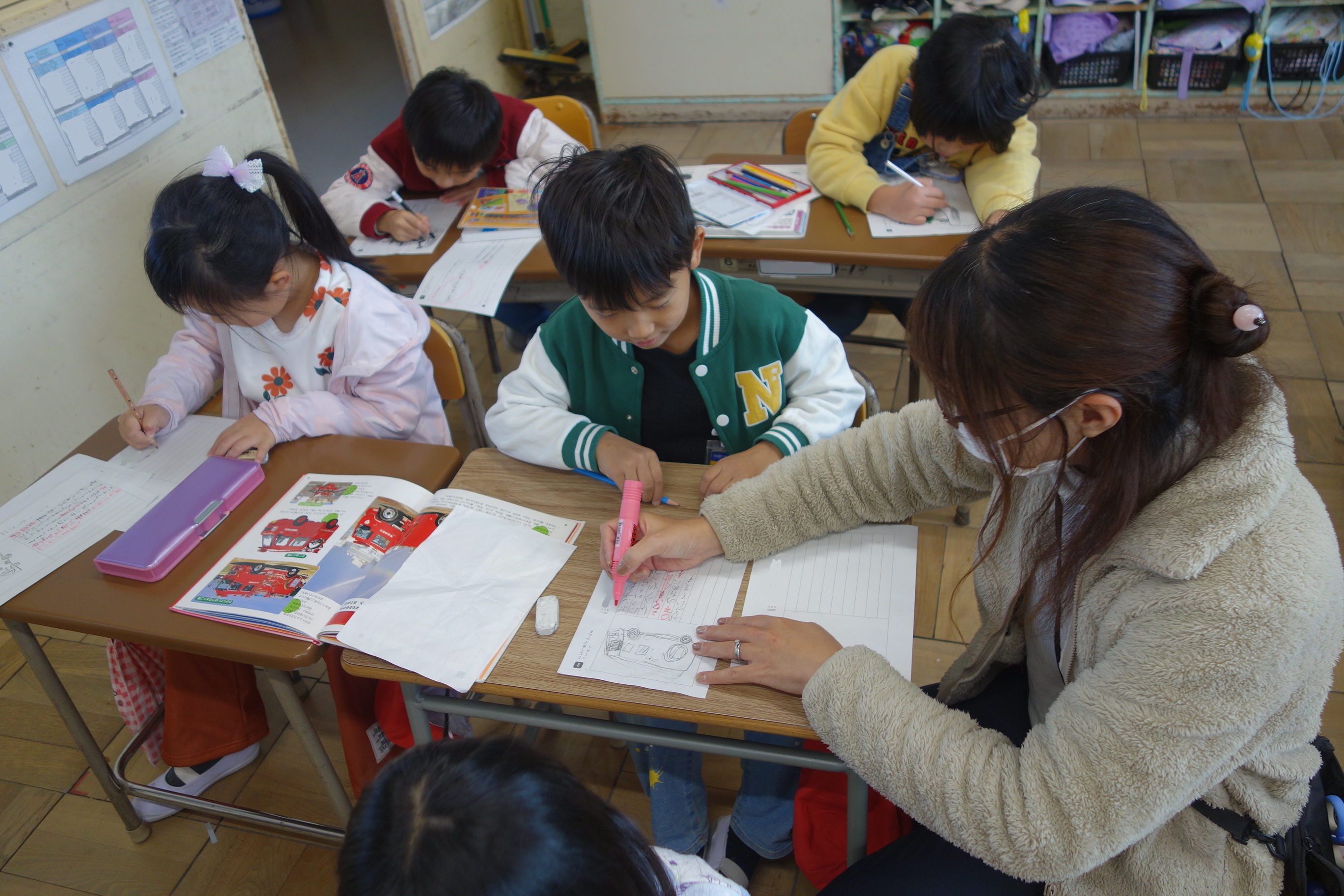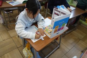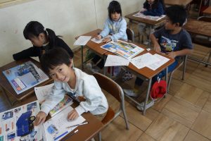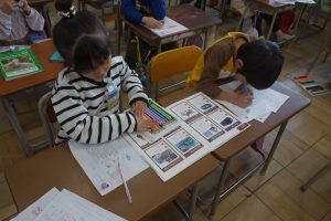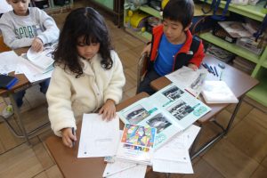 1年生1年生の国語では、「じどう車くらべ」で勉強したことをいかして、「じどう車しょうかいカード」をかいています。いろいろな自動車の中から紹介したい自動車を選んで、「しごと」や「つくり」について、しょうかいカードに書きます。みんなのカードが出来たら、それを1つに合わせて自動車図鑑の完成です。どんな図鑑が出来上がるのでしょうね。