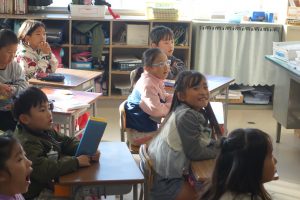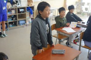 2年生の図画工作は、『ともだちハウス』の制作を進めています。この日は、ともだちハウスに置く小物について、みんなで考えました。どんな小物があり得るのか、皆でアイデアを出し合いました。自分の考えを言いたくて仕方ない様子の子がたくさんいましたから、アイデアがいっぱい集まりましたね。