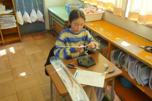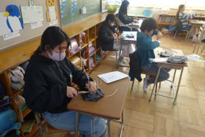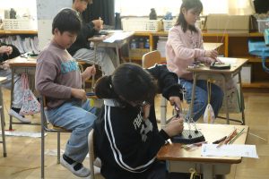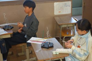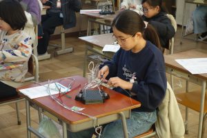 5年生5年生の図画工作は、立体作品の制作にとりかかっています。針金を主な材料として、気に入った曲がり具合を見つけたり、それらを束ねて美しさを形作ったりしています。ひらめきやアイデアが大切になりそうです。みなさん、じっくりと考えながら手を動かしていましたね。