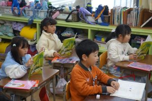 1年生1年生の国語は、日付歌の音読をしています。まず、日付歌に出てくる漢字の読み方を覚えてから、日付歌の音読練習に入りました。まずは、席ごとで音読しました。それから、自分の誕生月を順番に読みました。楽しく日付の読み方を覚えることができました。