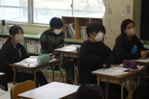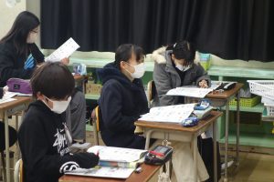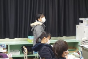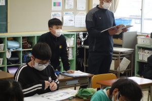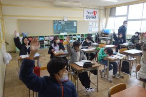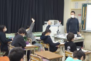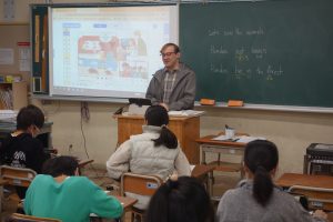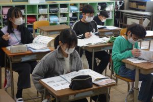 6年生の外国語では、世界の自然環境や生物がかかえる問題について聞き取り、考える内容に取り組んでいます。いつもより少し難しい内容かもしれません。この日は、英語を聞いて,4つの場面のどれに該当するかを確認したり、動物に関する語句を知って発音を覚えたりしました。