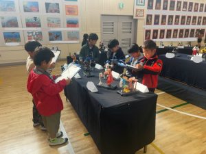 いつもは体育で使う体育館が、今日は作品展仕様になっていて、子どもたちも「すごーい!!」と感動していました😲
