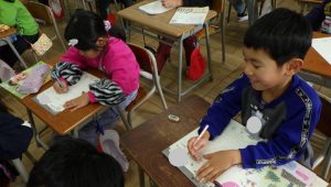 「お母さんはお料理名人」「お父さんはバスケ名人」「おじいちゃんは釣り名人」など、子どもたちは家族の得意なことを思い出しながら、楽しそうに話していました。
