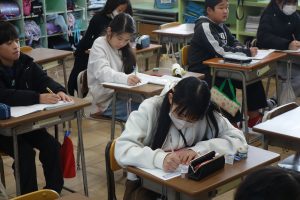 割合 5年生 2025.12.11 5年生の算数は、割合について学んでいます。この日は、学芸会の各楽器の定員数とそれに対する希望者数の資料を見て、定員とくらべると,どの楽器の希望が多いといえるのかを考えました。そして、それぞれの楽器の希望倍率を実際に計算してみました。