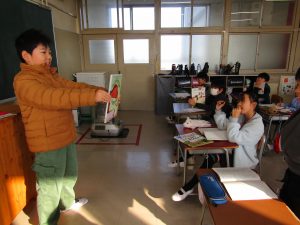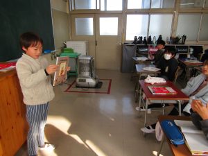 3年生の国語では、選んだ外国の本をみんなに紹介しました。紹介文を書くときは、「あらすじ・内容」「おもしろかったところ」に分けて、上手に発表することができました!まもなく冬休みですが、これからも読書に親しみたいですね♪