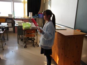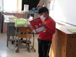 3年生3年生の国語では、選んだ外国の本をみんなに紹介しました。紹介文を書くときは、「あらすじ・内容」「おもしろかったところ」に分けて、上手に発表することができました!まもなく冬休みですが、これからも読書に親しみたいですね♪