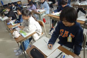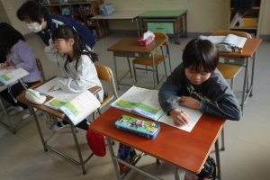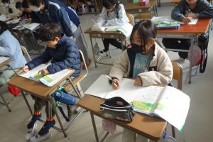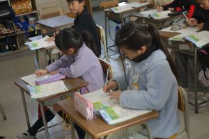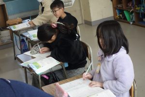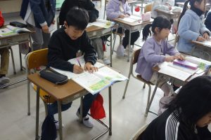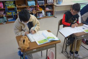 3年生の算数は、1列に並んだものの数と順序との関係について学んでいます。まず、1列に並んだものの数とその間隔との関係を図に表して考えることを覚えました。図がなくても問題を解くことができることに気づいた子は、関係図なしで先生問題に挑戦しました。