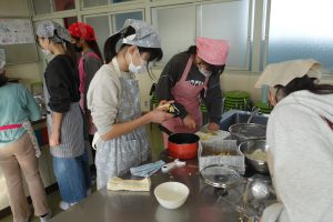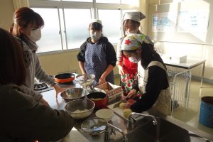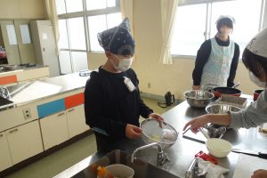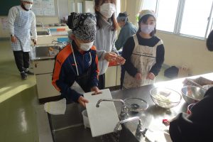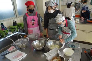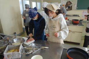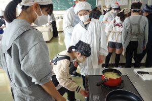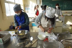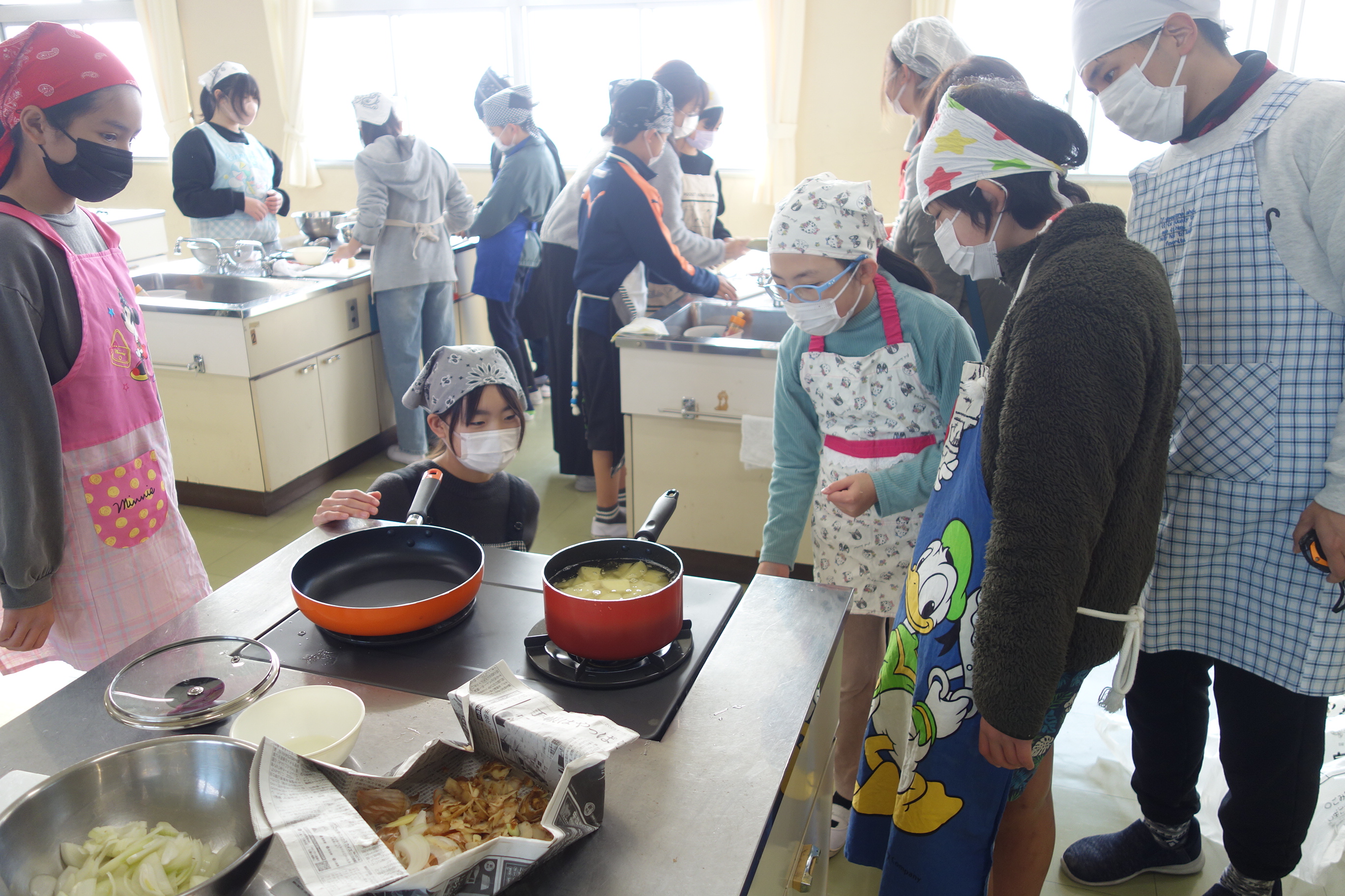 調理実習 6年生 2025.12.17 6年生の家庭科は調理実習でした。家庭科室でグループに分かれてベーコンポテトをつくりました。作業の流れを黒板で確認しつつ、包丁の使い方などのアドバイスをお互いにし合いながら作業を進める姿は、さすが6年生という感じでした。