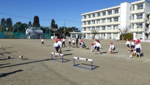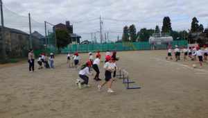 そして、最後に、ボールをハードルのゴールに入れるゲームをしました。