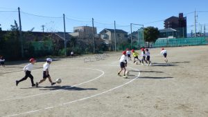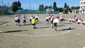 まずは練習で、ペアにボールを取られないよに逃げる練習をしました。上手にドリブルをしながら逃げていく子供たち、終わった後はいい感じに息が上がっていました!💦